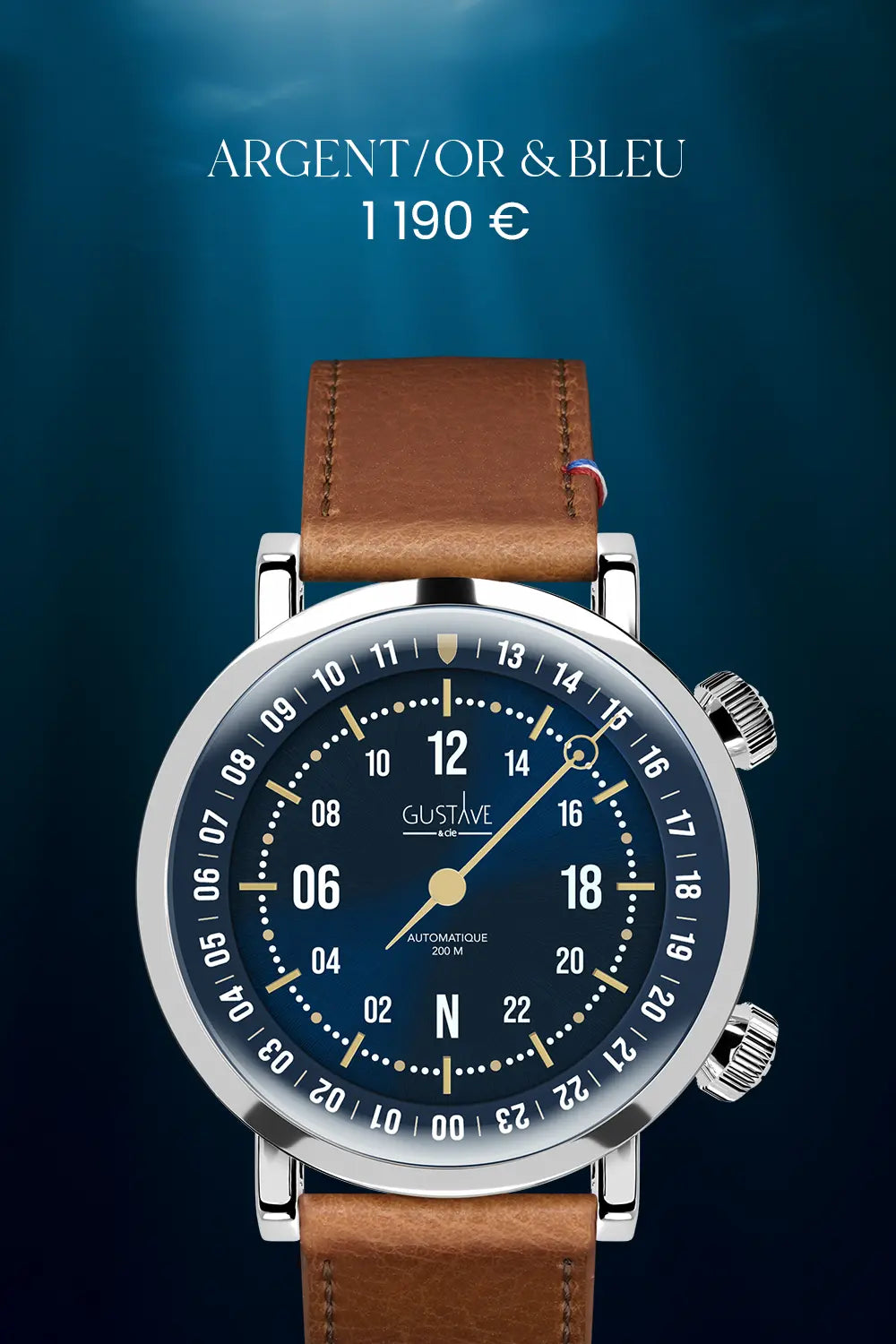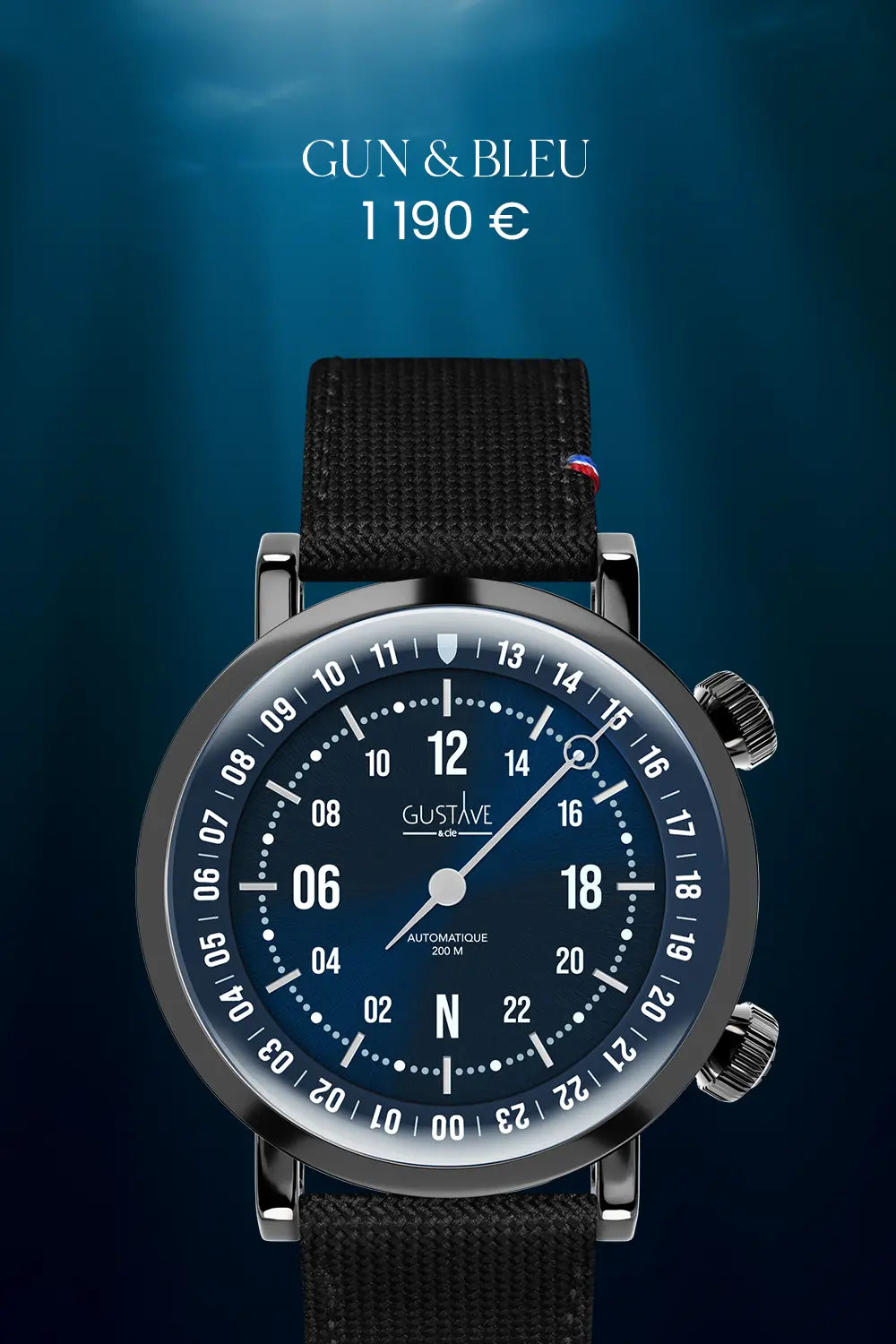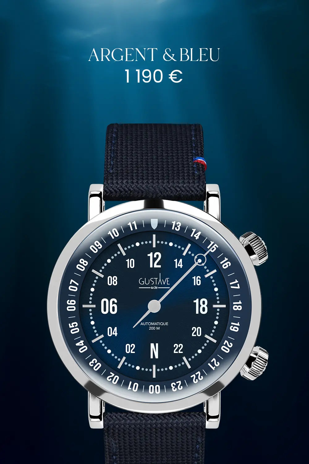 La collection Jules 24H s’adresse aux hommes exigeants en quête de performances horlogères et d’esthétique affirmée. Dotée d’un affichage mono-aiguille sur 24 heures, d’un second fuseau horaire (montre GMT) et d’un mouvement automatique de grande précision, cette montre homme incarne l’esprit du voyage et de la liberté. Conçue comme une véritable montre nautique, elle est étanche jusqu’à 200 mètres, soit 20 ATM, et idéale pour les aventures maritimes comme pour le quotidien. Son style robuste, technique et épuré séduit autant les explorateurs que les amateurs de belles mécaniques. Avec son mouvement suisse fiable et sa conception pensée pour durer, la Jules 24H est une montre qui traverse le temps avec caractère.