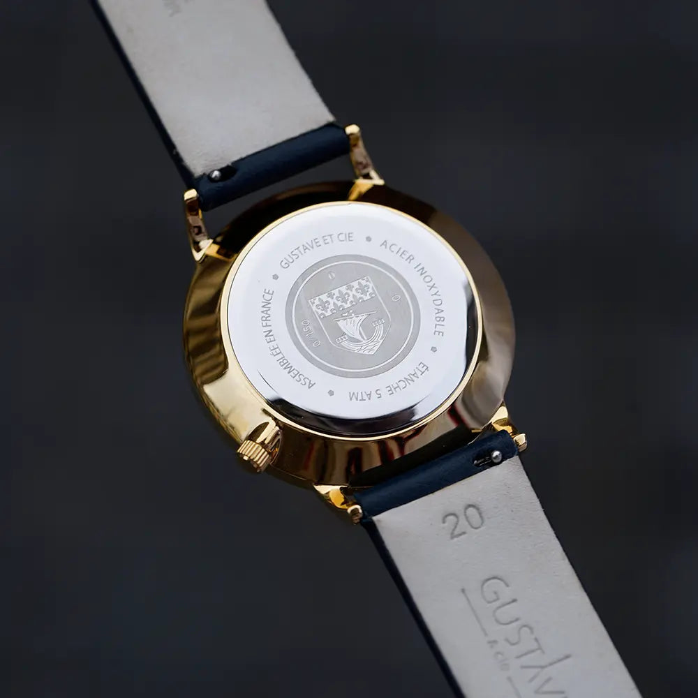 The colors of the watch directly echo the outfits worn by the Republican Guard during the great escorts for the President. The white dial reveals the Eiffel Tower in relief.