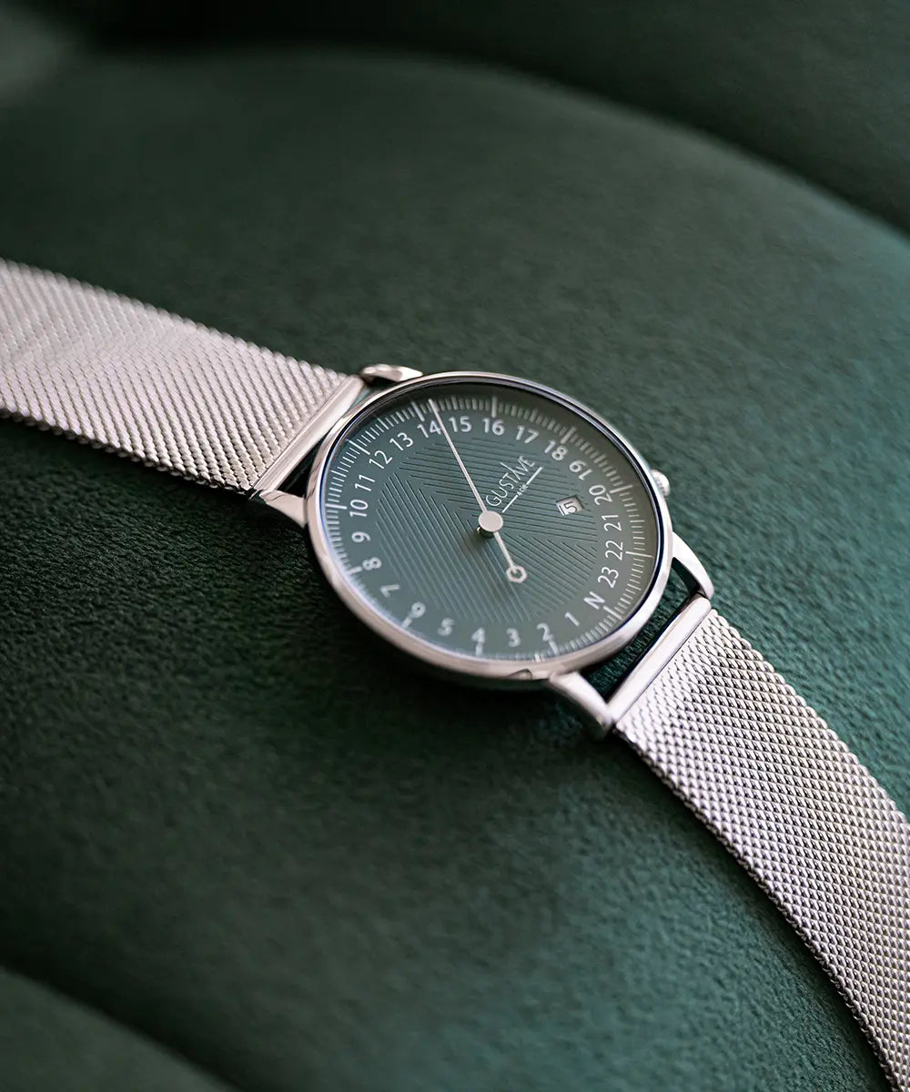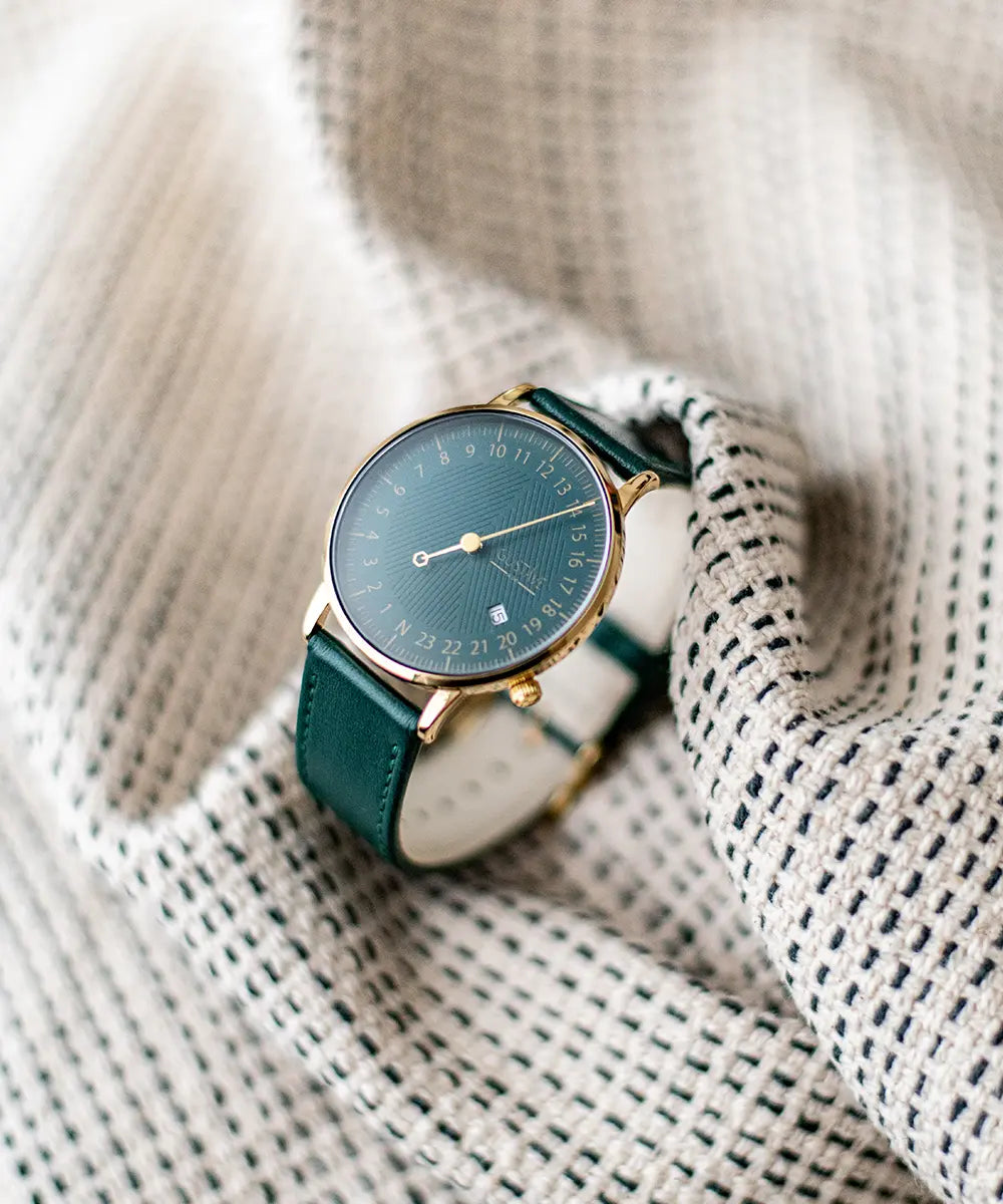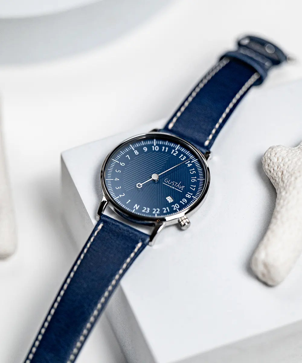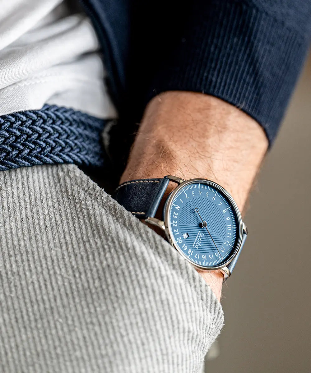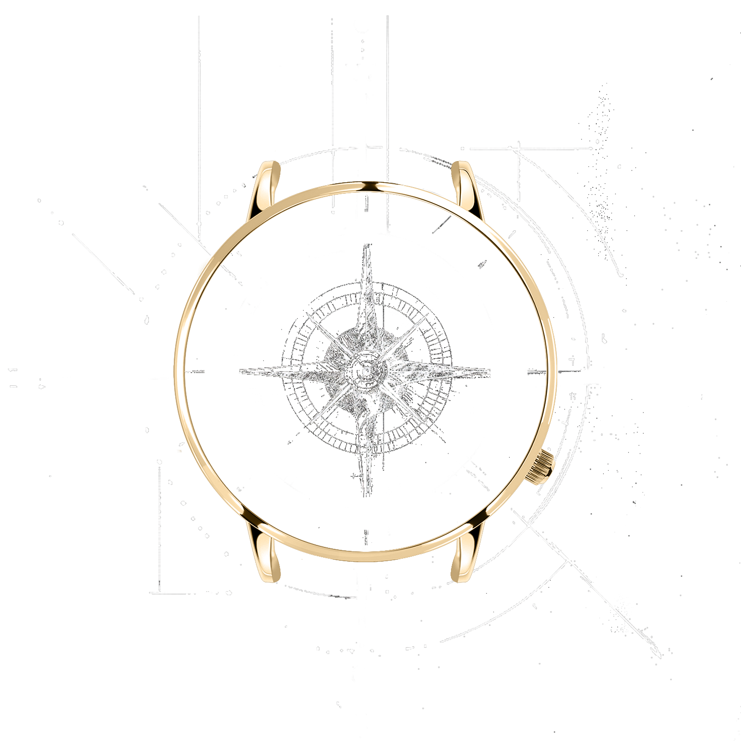 Les cadrans de la collection André arborent discrètement par un “N” le point cardinal Nord… car cette montre peut aussi servir de boussole ! Le principe est simple, il suffit de pointer l’aiguille en direction du soleil, et le Nord est indiqué par le « N » sur le cadran.