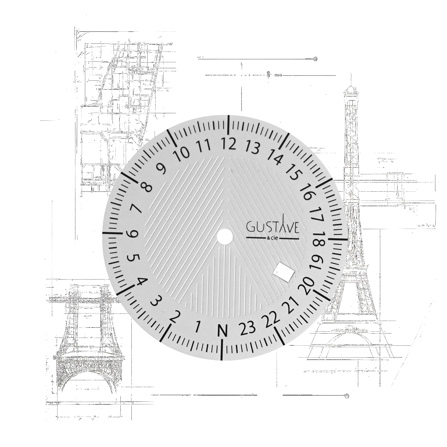 En y regardant de plus près, la silhouette discrète de la tour Eiffel se devine entre les lignes, une signature parisienne tout en finesse. Chaque index de la montre André représente 10 minutes. Une nouvelle façon de lire l'heure, le temps à la française.