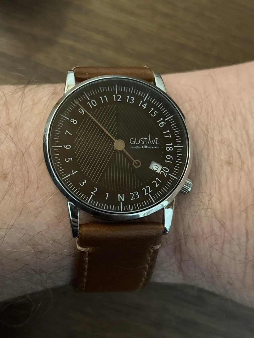 Les cadrans de la collection André arborent discrètement par un “N” le point cardinal Nord… car cette montre peut aussi servir de boussole ! Le principe est simple, il suffit de pointer l’aiguille en direction du soleil, et le Nord est indiqué par le « N » sur le cadran.