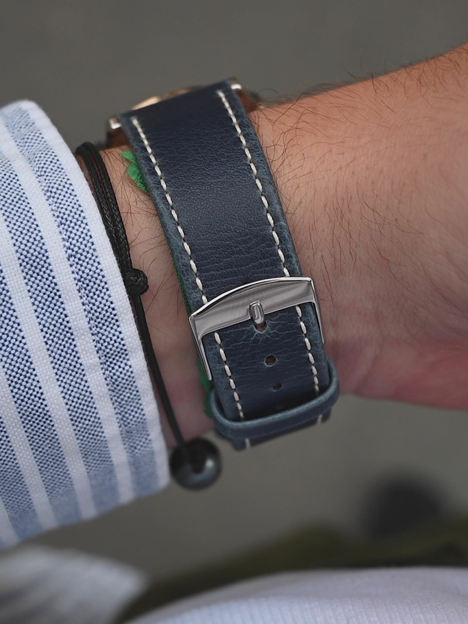 Grâce au système de barrette à ergot, vous pouvez changer de bracelet en moins de dix secondes sans outil. Bien faire attention à mettre la partie du bracelet avec la boucle en haut de la montre au niveau du 12h.
