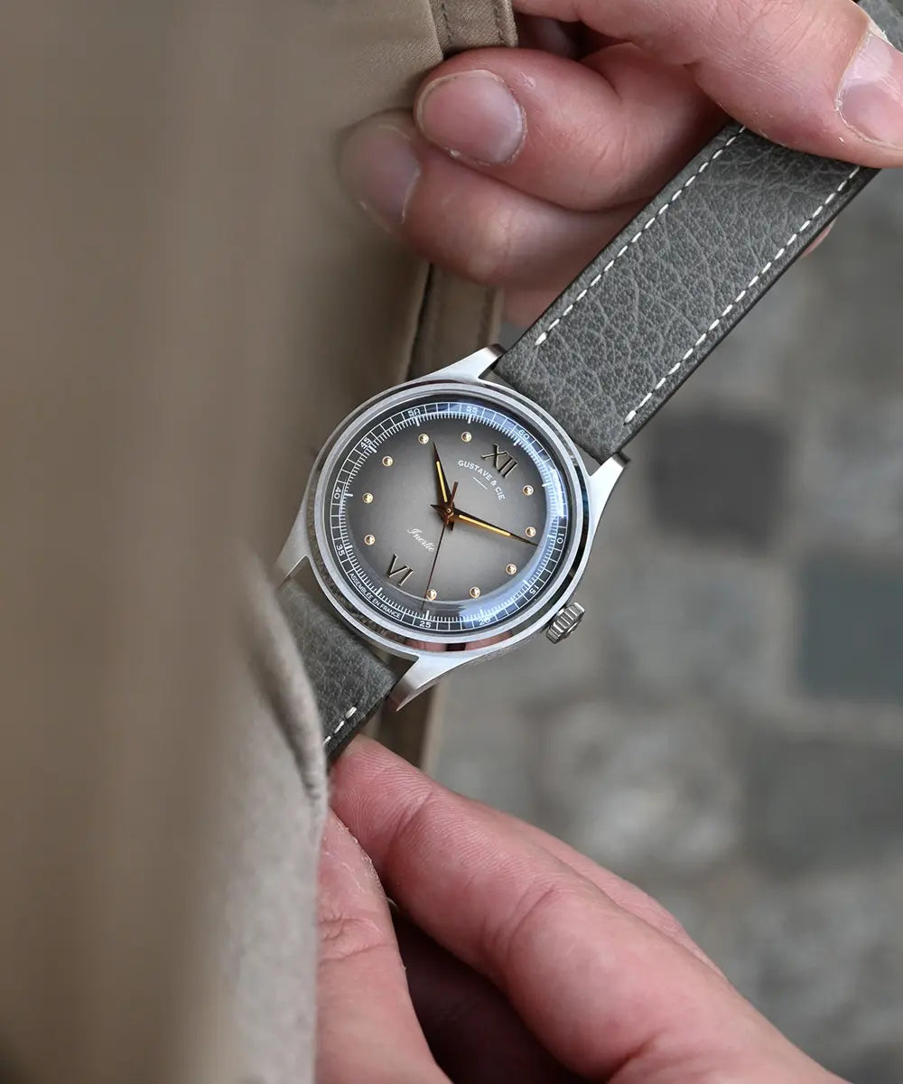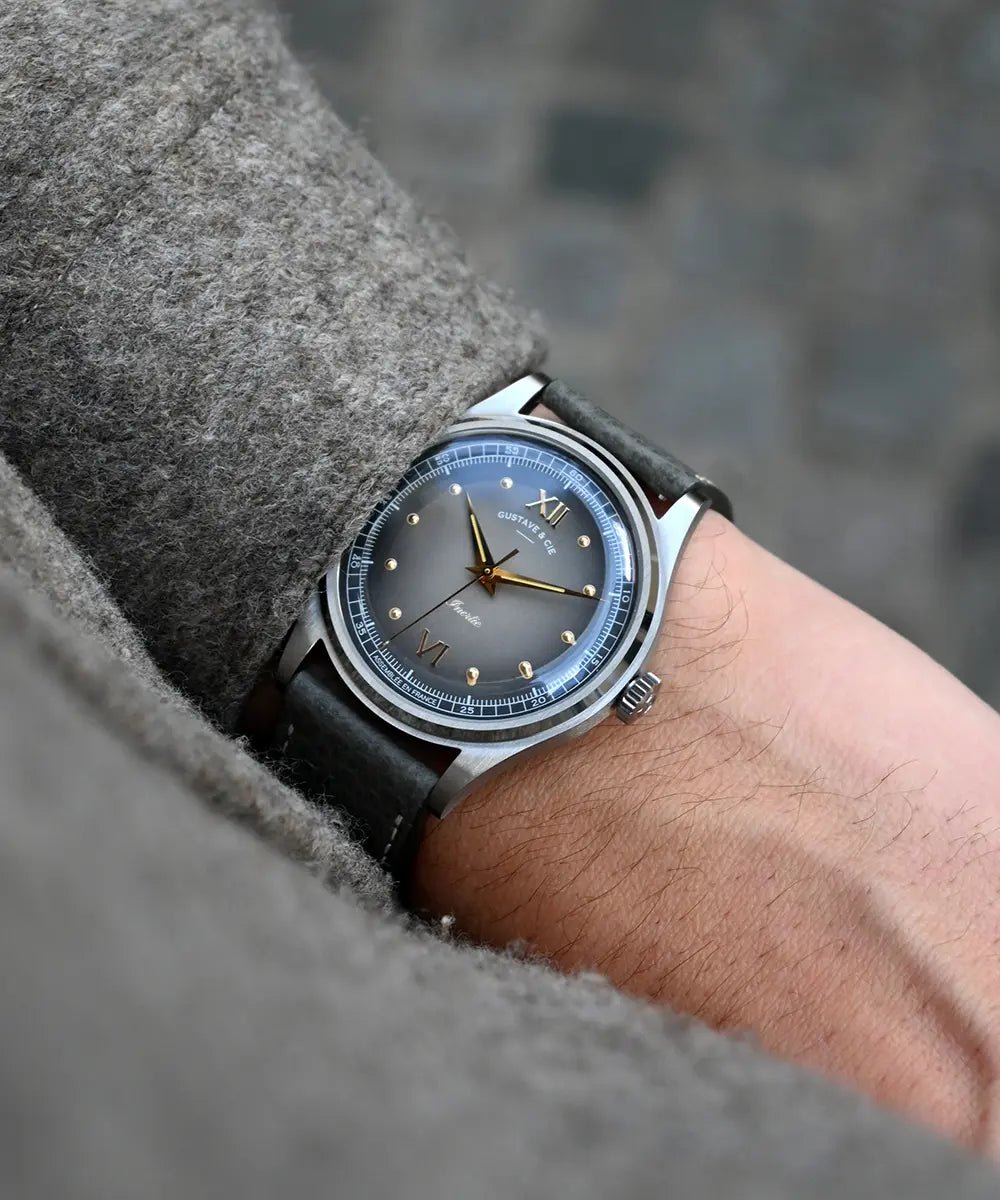 Pour GUSTAVE et cie, il n’y a pas de taille de montre « idéale ». Néanmoins, si votre poignet mesure moins de 15cm, il est fortement conseillé de se diriger vers un boîtier 36mm. Inversement, si votre poignet mesure plus de 18cm, nous préconisons un boîtier de 40mm.