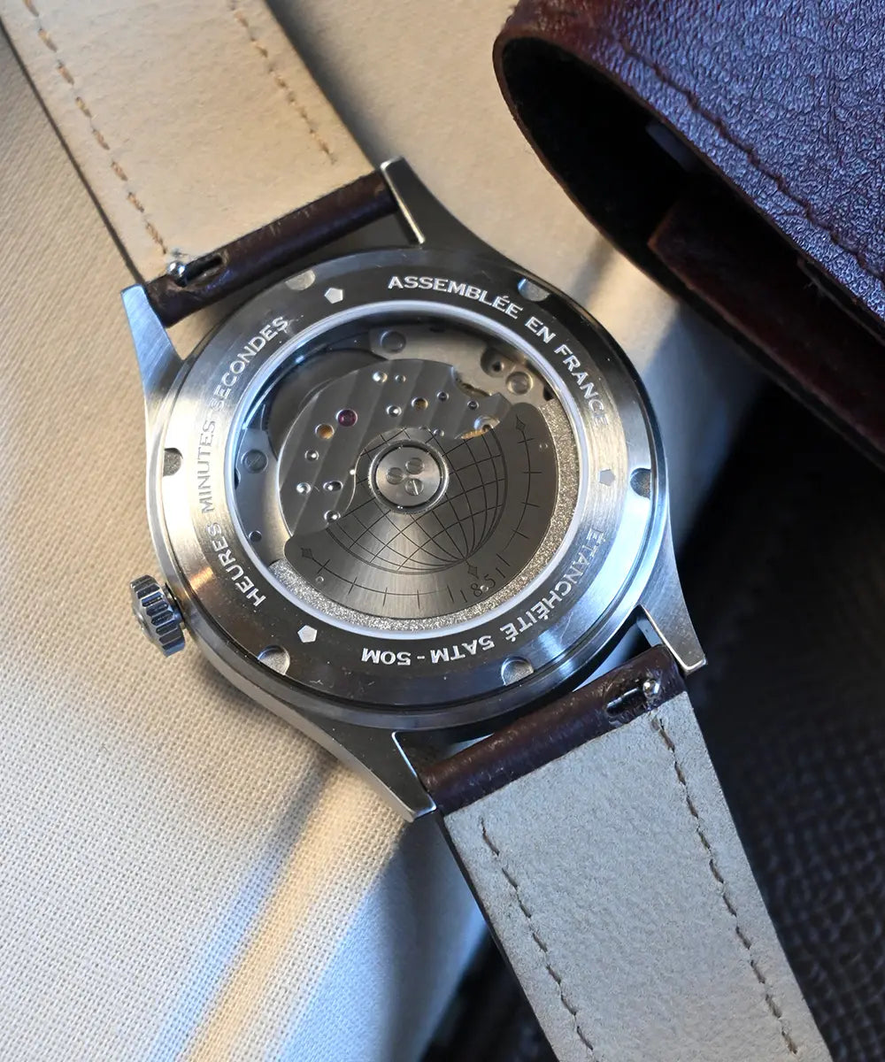 Au cœur de la collection Léon, bat le calibre automatique Miyota 9015, reconnu pour sa fiabilité et sa finesse. Avec ses 42 heures de réserve de marche, il accompagne le temps avec constance et régularité.