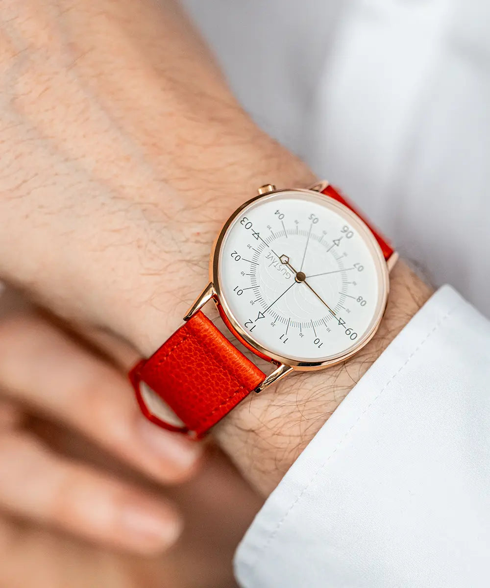 Pour GUSTAVE et cie, il n’y a pas de taille de montre « idéale ». Néanmoins, si votre poignet mesure moins de 15cm, il est fortement conseillé de se diriger vers un boîtier 36mm. Inversement, si votre poignet mesure plus de 18cm, nous préconisons un boîtier de 40mm.
