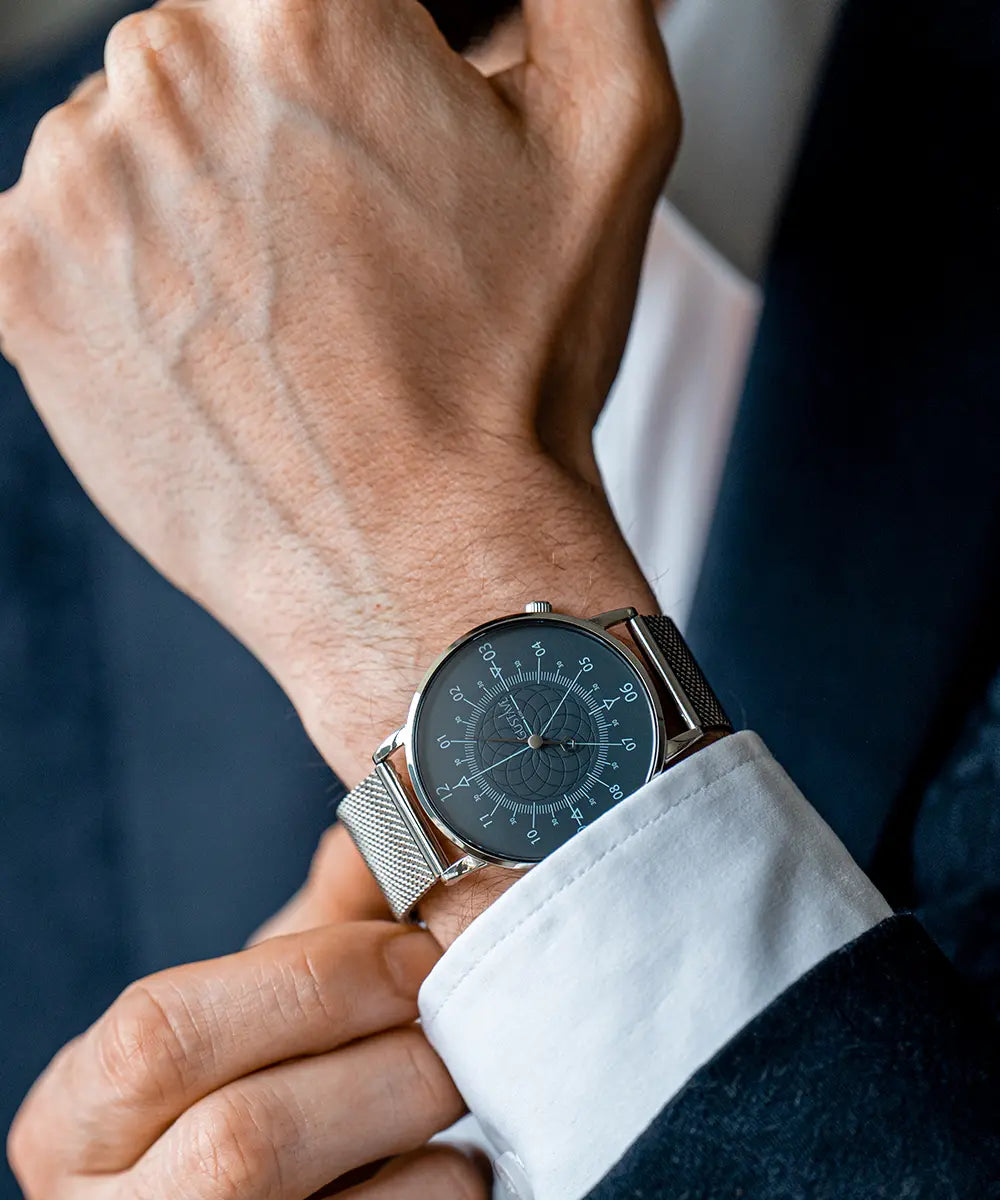 Alliant avec justesse élégance discrète et simplicité raffinée, la collection Louis incarne l’esprit du classicisme contemporain. Son design épuré révèle un cadran minutieusement travaillé, disponible en deux teintes emblématiques : blanc éclatant ou bleu profond, chacun mettant en valeur une fleur de vie finement embossée au centre du cadran.