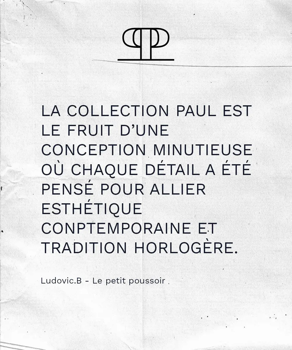 Avec son épaisseur de 12,1 mm, la collection Paul affiche un profil équilibré, alliant finesse et robustesse. Le choix des matériaux a été guidé par notre inlassable quête de qualité.